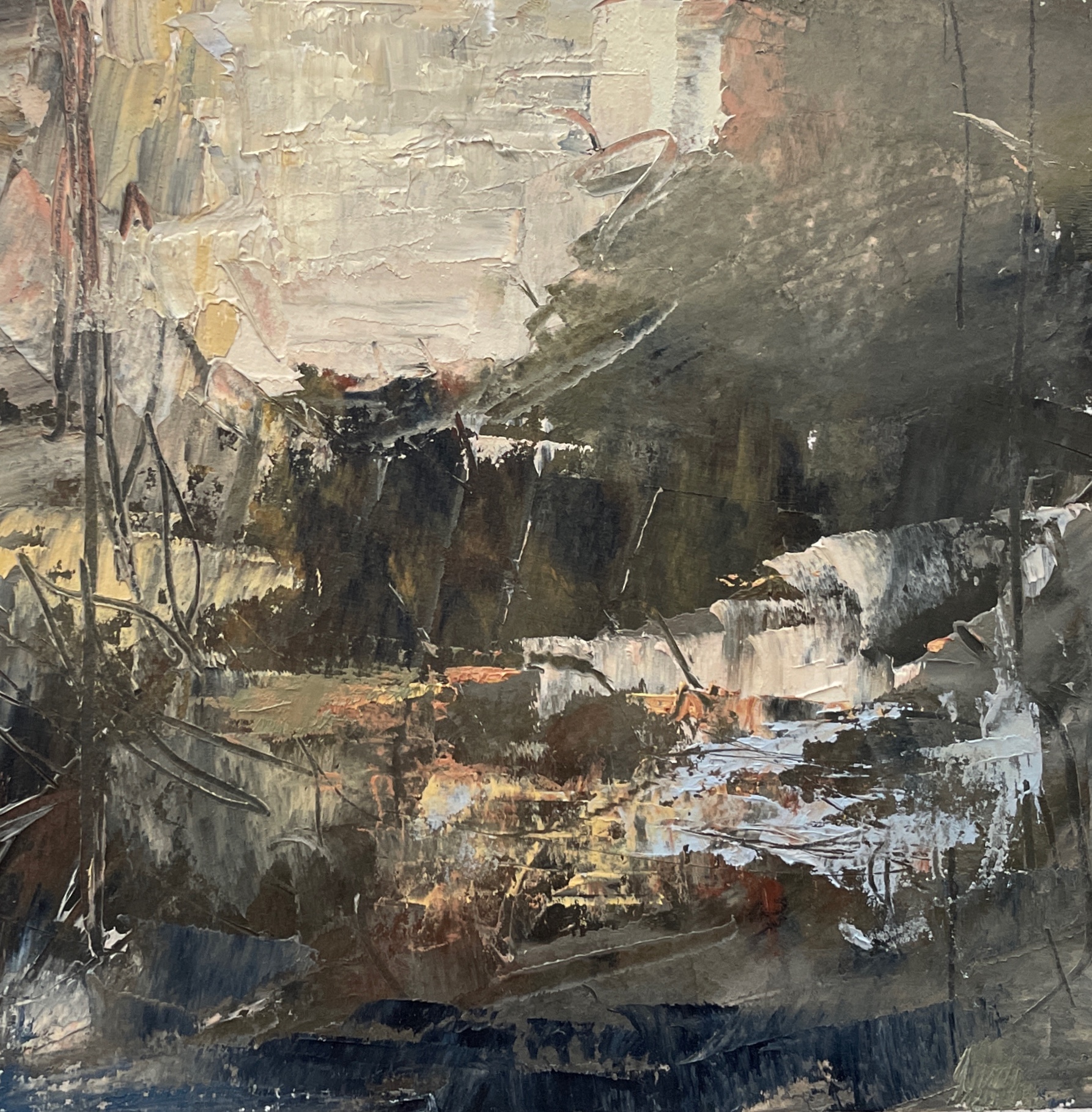 “What is your Abstract? It can be colorful or neutral tones, complicated or simple lines, bold or subdued and everything in between. What does Abstract Art mean to you? Can something that is abstract reference anything at all (landscape, human etc.) or does it need to be completely unrecognizable, referencing nothing but itself?”
